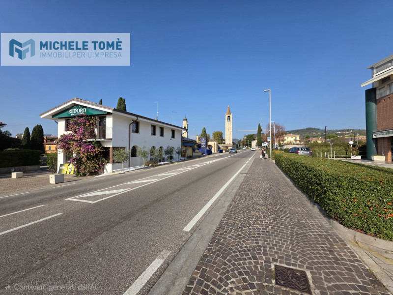 Il negozio si trova al piano terra di una palazzina commerciale e residenziale edificata a ridosso della strada Gardesana, a pochi passi dal centro storico del paese e dal parcheggio a pagamento. La superficie è distribuita su due livelli; al piano terra si trovano 40 mq circa attualmente suddivisi in 2 locali a mezzo di una parete mobile, mentre al piano interrato c'è una superficie di 16 mq circa adibita a magazzino. Al piano seminterrato è inoltre presente un garage di 16 mq, con basculante, direttamente collegato al magazzino. Nella corte condominiale il negozio dispone anche di un ulteriore posto auto esterno scoperto. Gli impianti di riscaldamento e condizionamento sono autonomi in pompa di calore. Mensili.